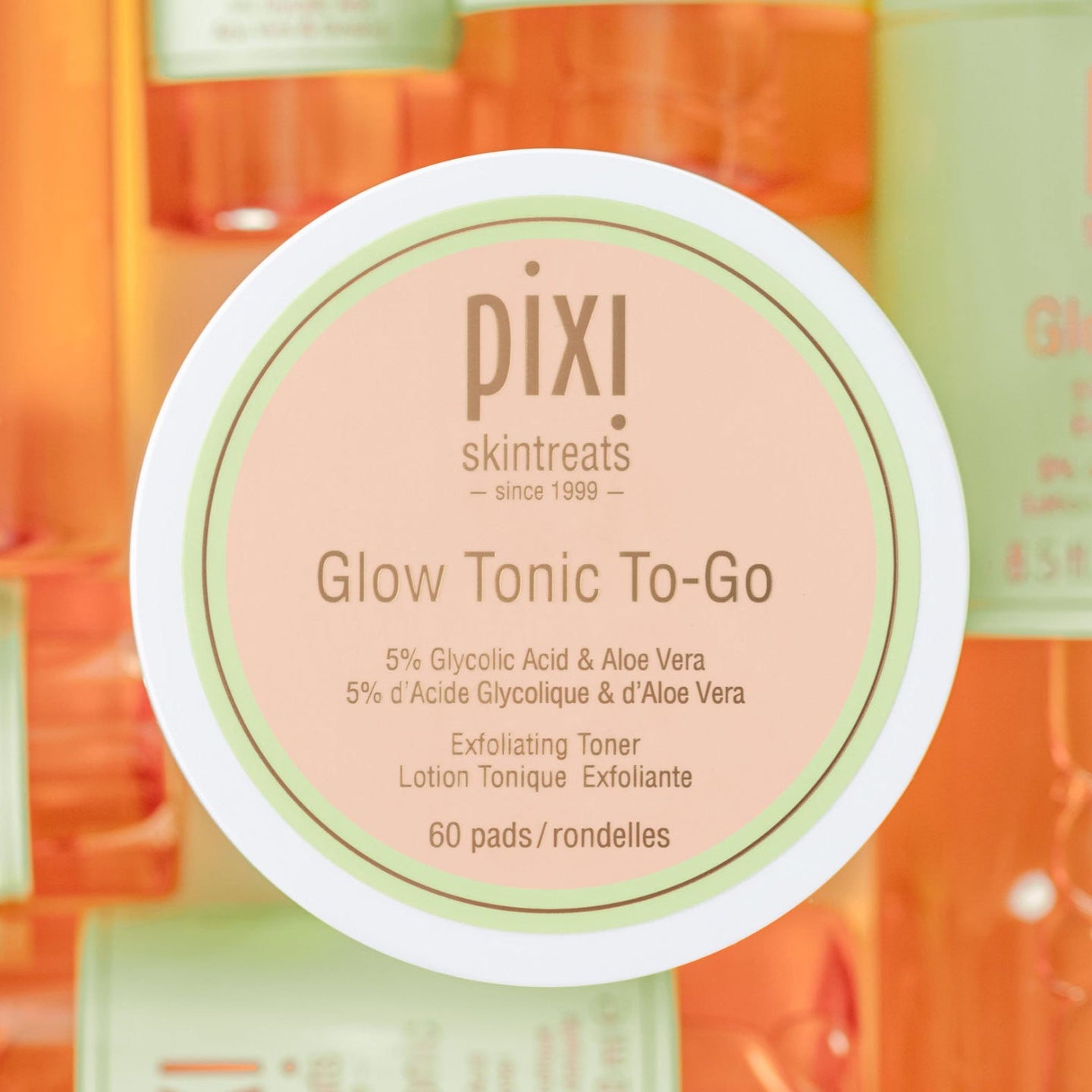 - Glow Tonic To-Go will help gently exfoliate and wipe away impurities with its 5% Glycolic Acid formula